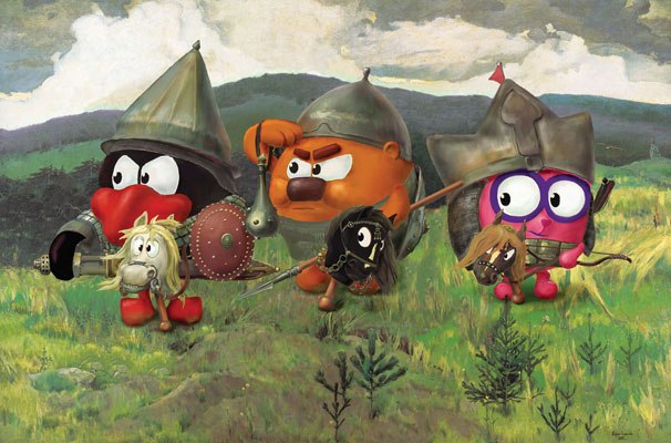 Прикольно! А еще прикольнее, что художнику пришло в голову все это нарисовать. Я бы не стала. Смешарики прикольные, конечно, но не люблю я когда из прекрасного делают фарс.