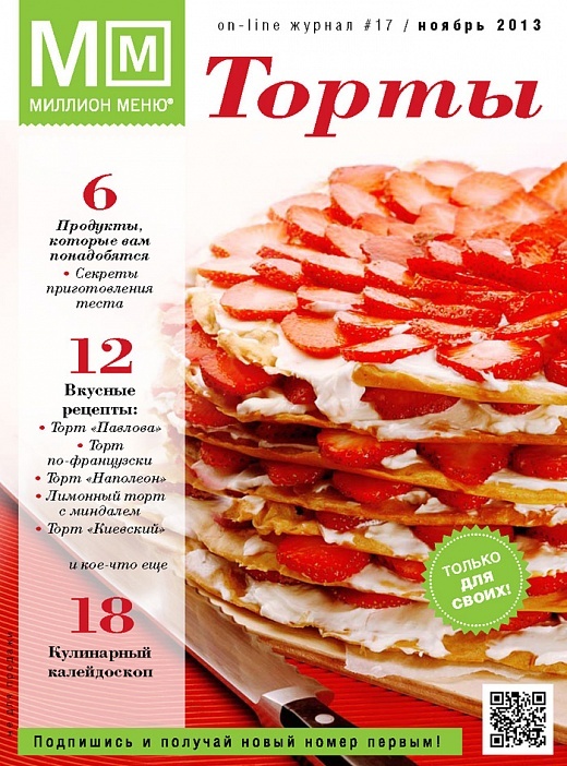 Мы расскажем о продуктах, которые используют для приготовления тортов, о секретах приготовления разных видов теста. И, конечно же, вы найдете в этом выпуске множество рецептов очень вкусных тортов.