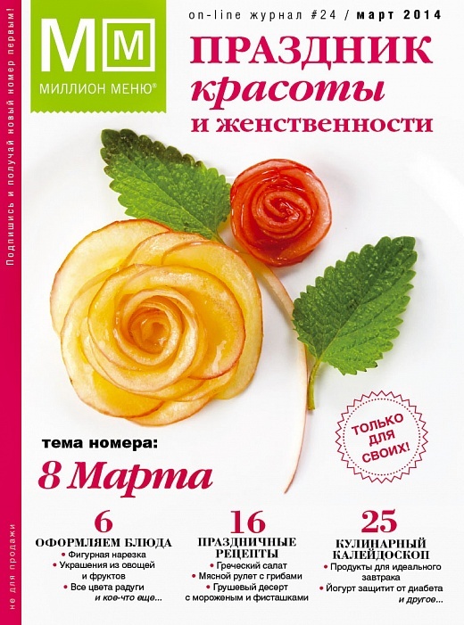 8 Марта — по всем канонам необычный день. В историю он вошел как день борьбы за права женщин. Призыв к этому впервые прозвучал в 1910 году на Международной конференции женщин-социалисток в Копенгагене, из уст Клары Цеткин. В России международный женский день впервые отмечался в 1913 году в Петербурге. С первых лет советской власти он стал государственным праздником и только с 1965 года – нерабочим днем календаря. Со временем этот праздник утратил свою политическую окраску и стал приветливым праздником Весны и Женственности. И мы традиционно отмечаем его как праздник наших мам, бабушек, жен и дочерей. В этот день так хочется, чтобы все вокруг было красивым! И блюда на праздничном столе, который вам помогут накрыть домашние, конечно же, должны быть не только вкусными, но и и оформленными оригинально.