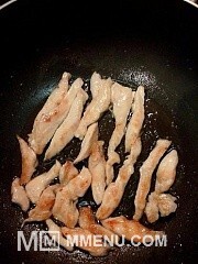 Куриное филе нарезать полосками и быстро обжарить на растительном масле в воке или глубокой сковороде до золотистого цвета - 2