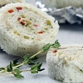 С батона срежьте корочки, мякиш разрежьте вдоль на тонкие пласты. На каждый уложите приготовленную начинку. - 4