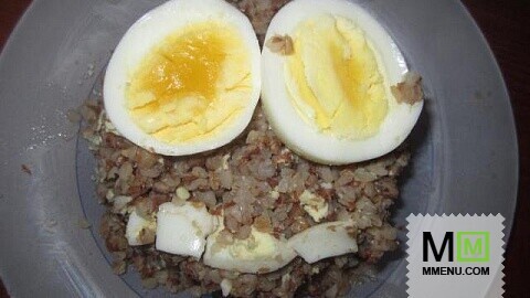 яйца нарезаем и смешиваем с гречкой. Добавляем туда же сливочное масло. - 4