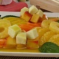 Персик и сливы, очистив от косточек, нарежьте дольками. - 3