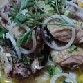 выкладываем на него начинку из куриного филе, лука, грибов.