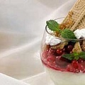 Мусс с помощью кондитерского мешка выкладывайте на два кружочка яблок и накрывайте третьим. Оформите листиками мяты.
