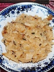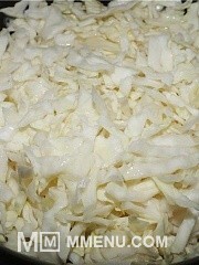В спассерованный лук добавить капусту, посолить и перемешать. Жарить на сковороде с открытой крышкой до коричневого цвета - 4