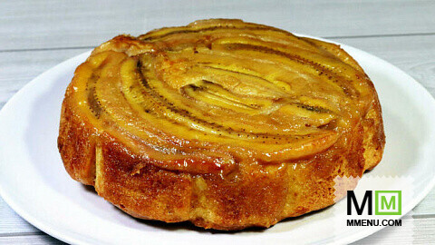 - Готовый пирог вынимаем из формы, переворачиваем на блюдо и снимаем пергамент.