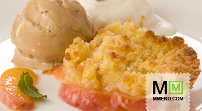 Разрежьте пирог на порции и подавайте с мороженым, оформив листиками мяты.