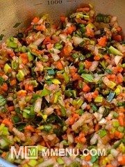 1. Курицу разделать. Грудку отделить от костей и убрать филе для другого блюда. Снять мясо с одной куриной ноги и очень мелко порезать или пропустить через мясорубку. Выложить на смазанный маслом противень оставшиеся куски курицы, кости от грудки и ноги и запекать 30 минут при температуре 200С. Бульон из запеченных кусочков курицы и костей получается более насыщенным, прозрачным и вкусным. - 3