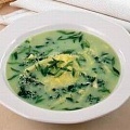 Мелко нарезанный шпинат потушить, добавив масло и мелко нарезанный зеленый лук. Затем посолить, довести до кипения и влить горячую воду. Как только суп закипит, всыпать макаронные изделия. Когда они будут готовы, влить 1 стакан молока. Суп снять с огня и заправить яйцами. Подавать, посыпав тертым сыром или брынзой и поперчив.