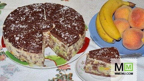 Режем по 2 банана, апельсина (я взяла по сезону персики) и киви на средние кусочки. Повторюсь, что при желании можно взять любые другие фрукты: ананас, абрикос, клубнику и т. д. - 14