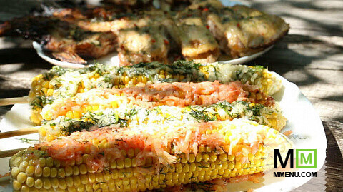 2. Смазываем кукурузу маслом и заворачиваем в фольгу.