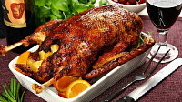 Понадобится: гусь, апельсины, масло оливковое, базилик сушеный, майоран, паприка, перец черный, перец красный, лимоны, соль