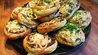 Понадобится: тесто слоеное, паштет, яйца, сыр, зелень